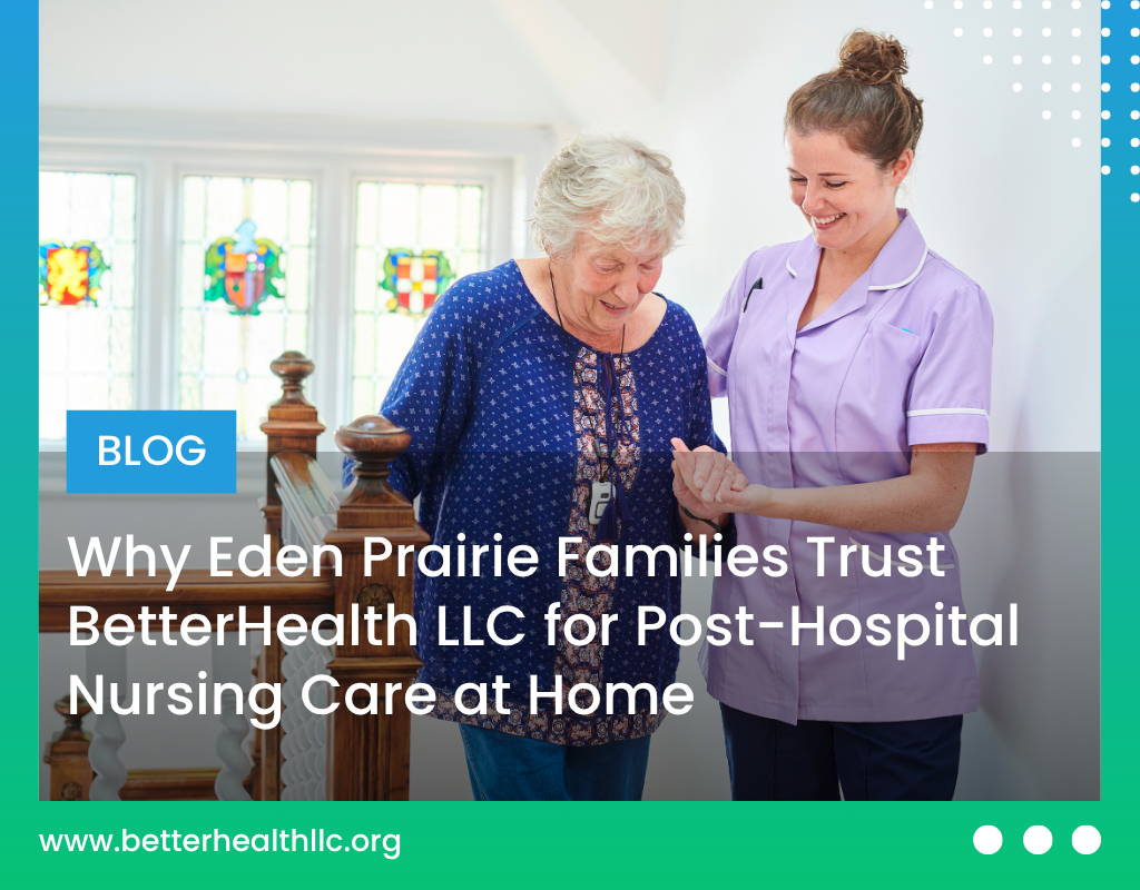 When a loved one is discharged from the hospital, the next step in their recovery is critical. Many families in Eden Prairie are now turning to nursing care at home as a more comfortable, effective, and personalized way to heal. At BetterHealth LLC, we’ve seen firsthand how the right care environment can speed up recovery and reduce the chances of rehospitalization.